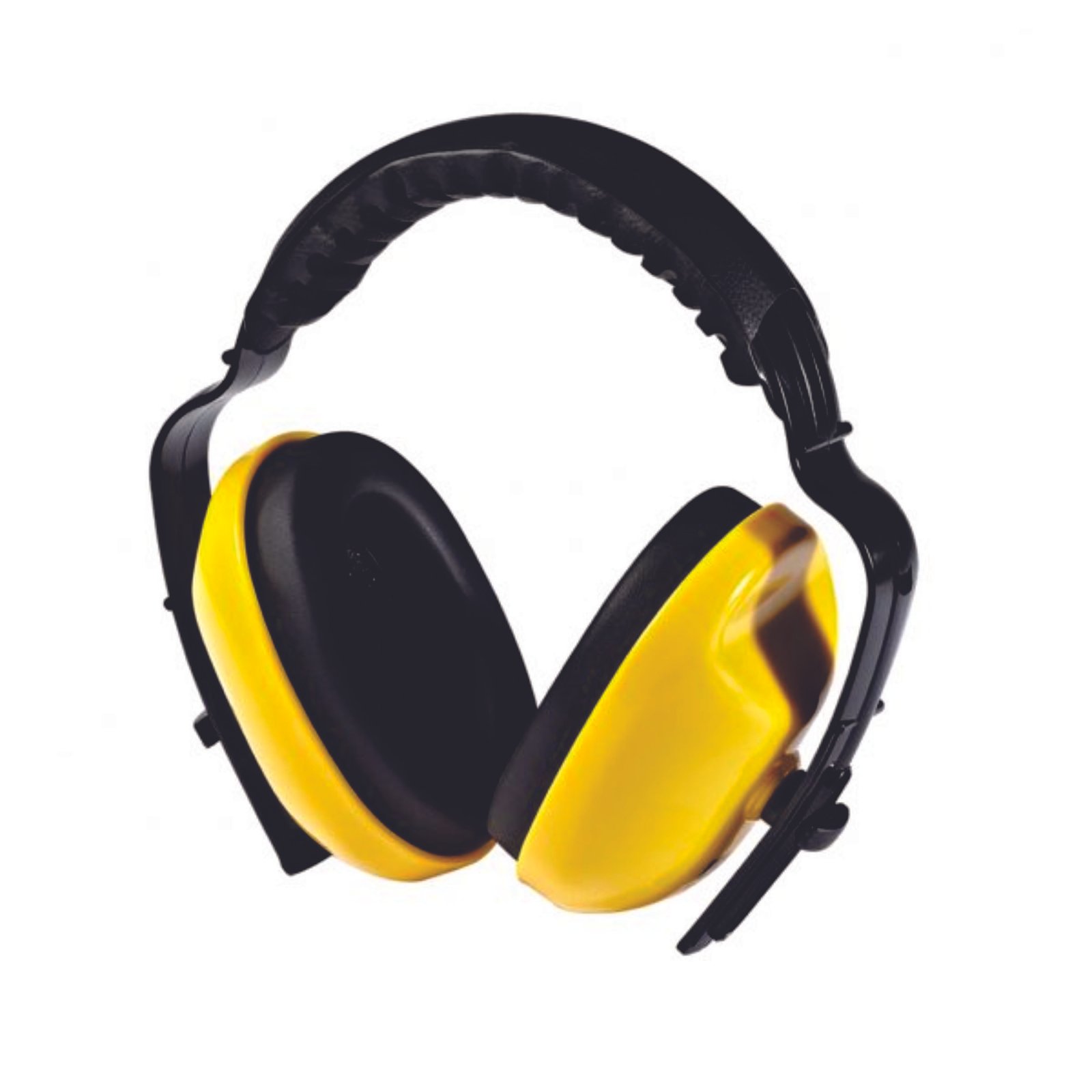 El protector auditivo tipo copa Bulldozer amarillo con diadema acolchada está especialmente diseñado para atenuar los ruidos.